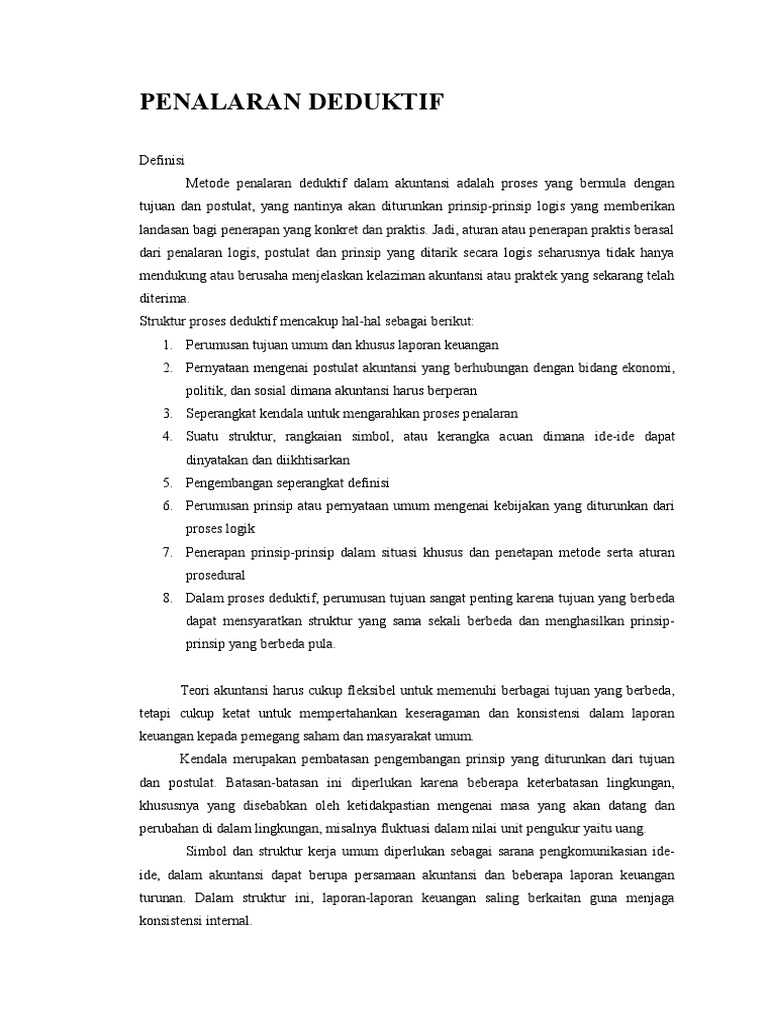 Jun 22, 2021 · prosedur penalaran yang dipakai bias dengan prosedur induktif yaitu cara berpikir untuk menarik kesimpulan umum dari berbagai kasus individual (khusus), atau prosedur deduktif yaitu cara berpikir untuk menarik kesimpulan yang bersifat khusus dari pernyataan yang bersifat umum.